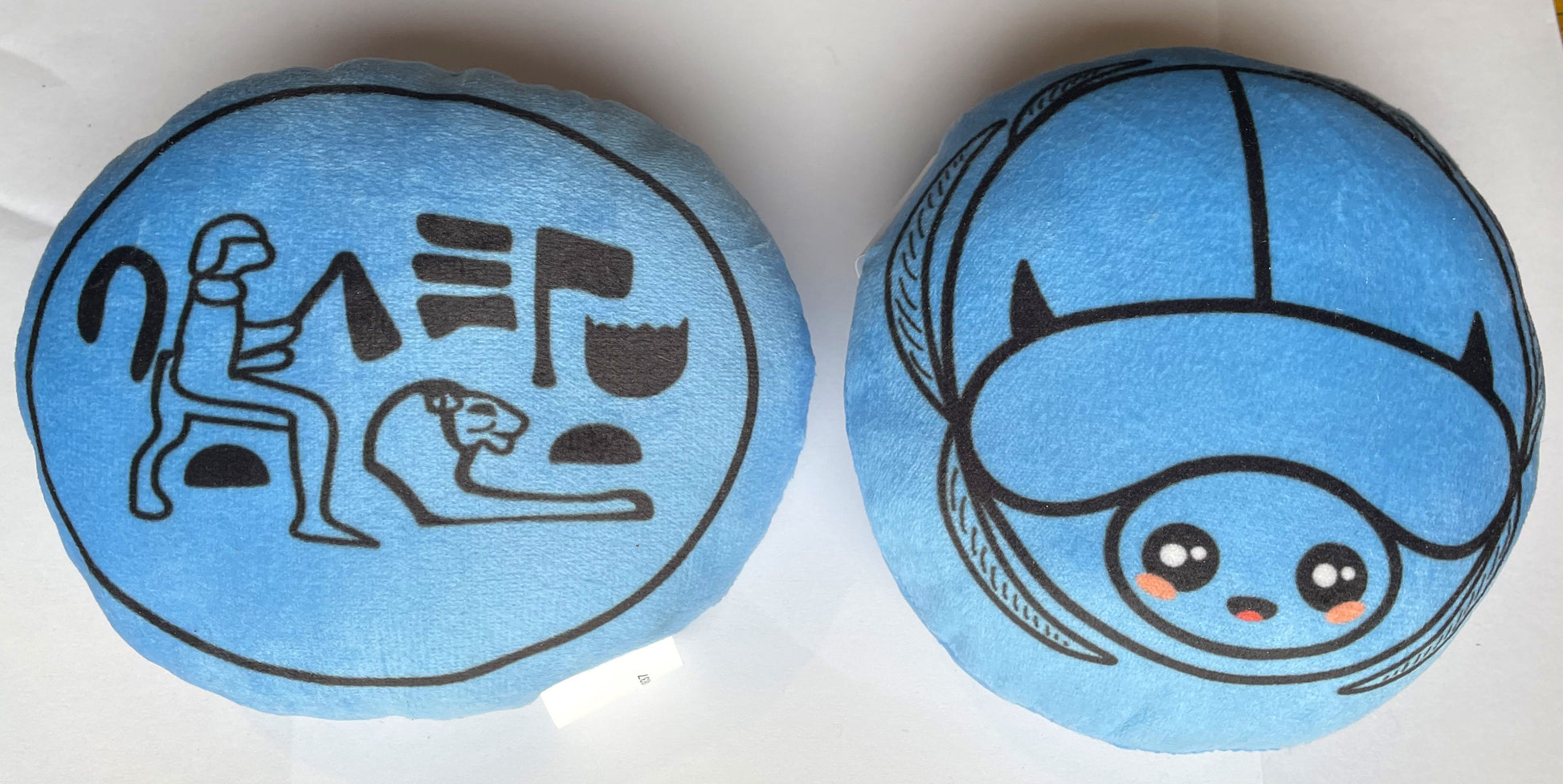 ISAC’s Khepri is inspired by a scarab of the God’s Wife Hatshepsut whose name and title are written on the bottom. The scarab was made when she was the wife and queen of Thutmose II, but Hatshepsut later ruled as pharaoh from 1473–1458 BCE after the death of her husband. The scarab (ISAC E25260) was a gift to Harold Nelson, the first Field Director of the University of Chicago’s Epigraphic Survey, from his staff on his 50thbirthday in November 1928.